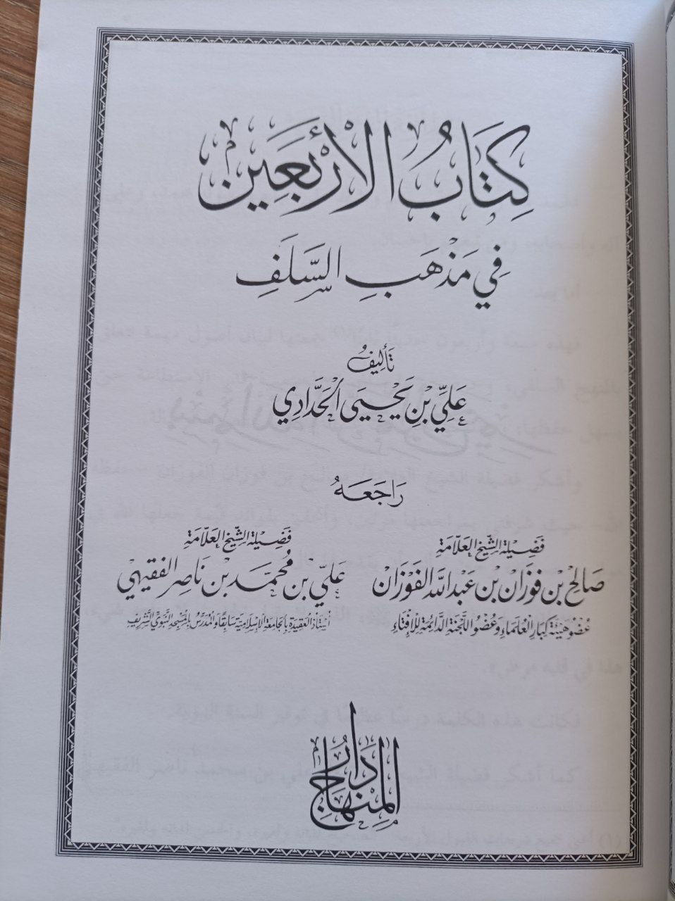 Livre du noble sheikh Ali Hadddi rassemblant 47 hadithts réunissant des fondements principaux de la voie des salafs.
